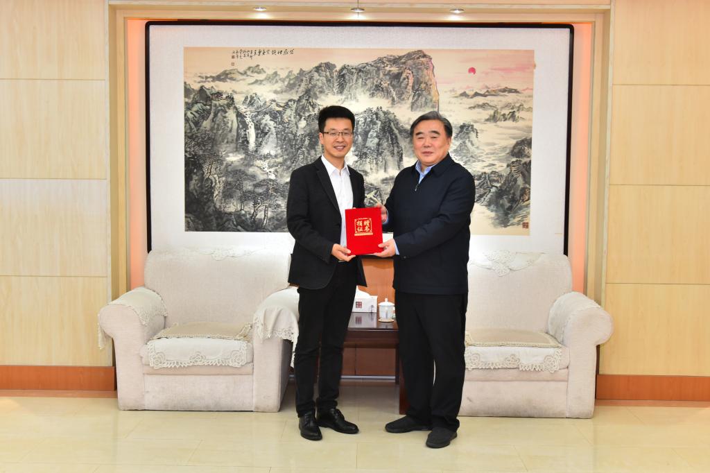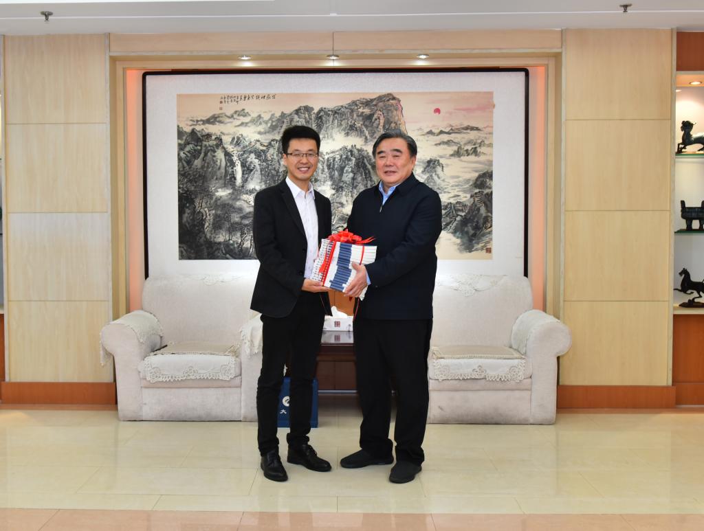 徐川向学校捐赠了自己的著作,姚庆国为徐川颁发了捐赠证书。
