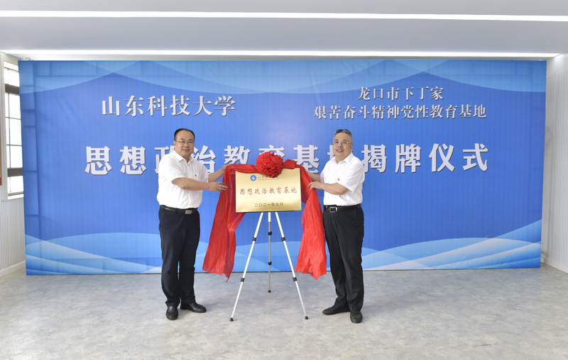校党委常委、宣传部部长李克周与龙口市委常委、组织部部长王志臣共同为思想政治教育基地揭牌。