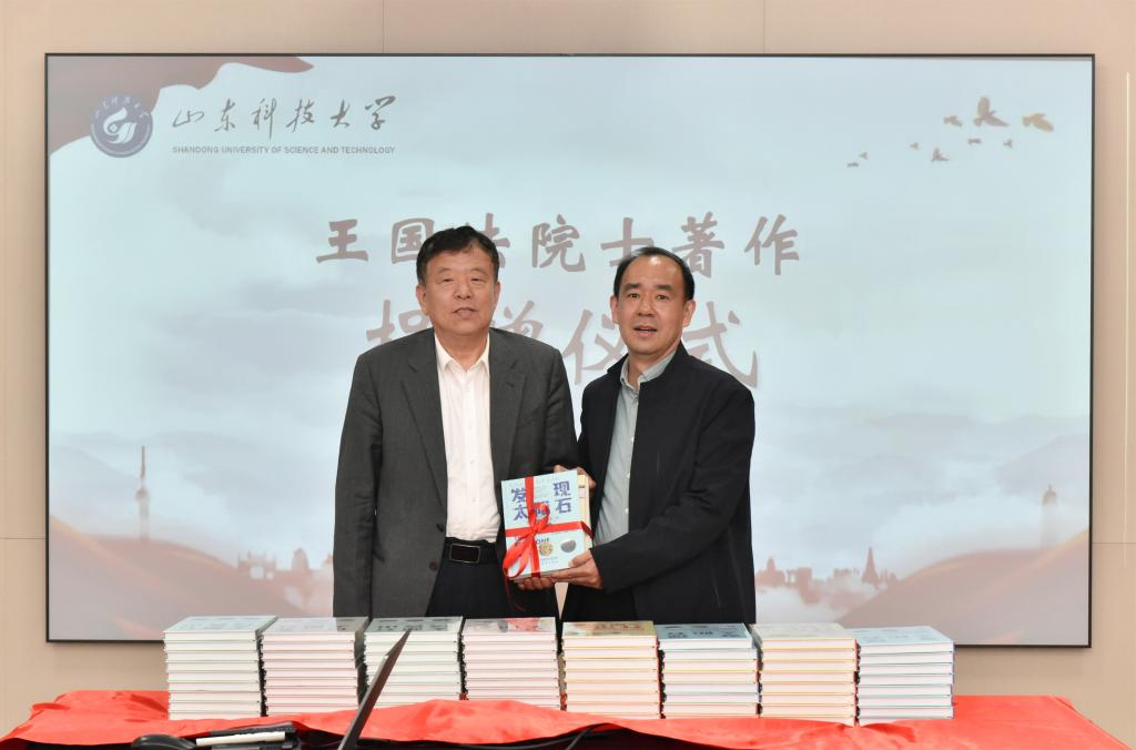 曾庆田感谢王国法院士一直以来对学校学科建设、平台建设、人才培养等方面的关心和支持,表示此次受赠的科普图书是培养学生成才的重要资源,有助于学生进一步了解煤炭行业及学校传统学科,希望王国法院士在科学研究、学科建设、人才培养等方面与学校进一步加强沟通交流,支持学校发展建设。