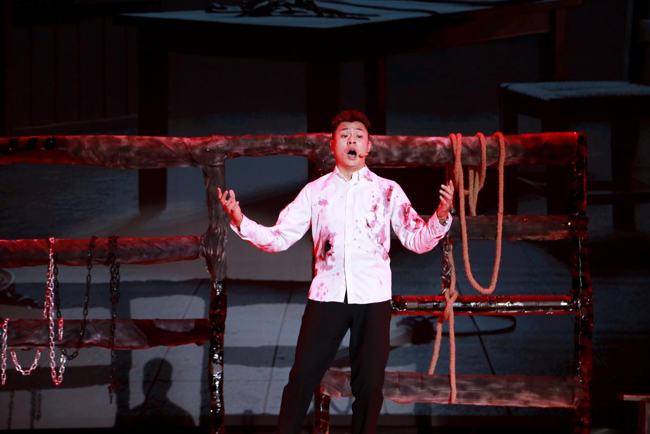 红色歌剧由艺术学院五十余名师生精心打造,剧中角色均由学生担纲。演员们用富有感染力的歌声和极具张力的表演,将那段血与火的历史重现于舞台之上。杨晓冬的坚定信念、金环的壮烈牺牲、银环的成长与蜕变,每一个情节都扣人心弦,让观众深刻感受到了他们坚定的信仰和无畏的勇气。舞台布景的巧妙转换,配合着灯光音效的渲染,营造出了逼真的战争氛围,让观众仿佛置身于古城之中,与剧中人物一同经历着生死考验。演出历时一个半小时,跌宕起伏的剧情、字正腔圆的对白、高亢抑或婉转的唱功、惟妙惟肖的扮相、精彩绝伦的背景,再次唤起了人们对那段峥嵘岁月的记忆,让红色基因在新时代焕发出新的活力。(通讯员:牟杰 摄影:张兴华 责编:徐展)