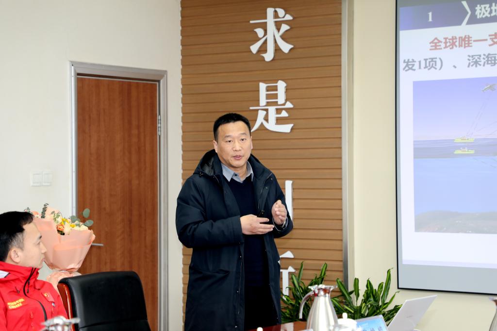 海洋学院相关负责人对极地勘测技术与装备团队在极地任务、实验室建设、团队建设等方面的工作开展情况及未来发展规划进行了汇报。