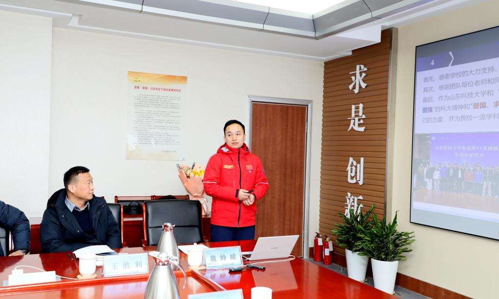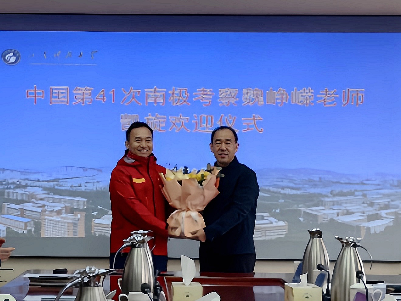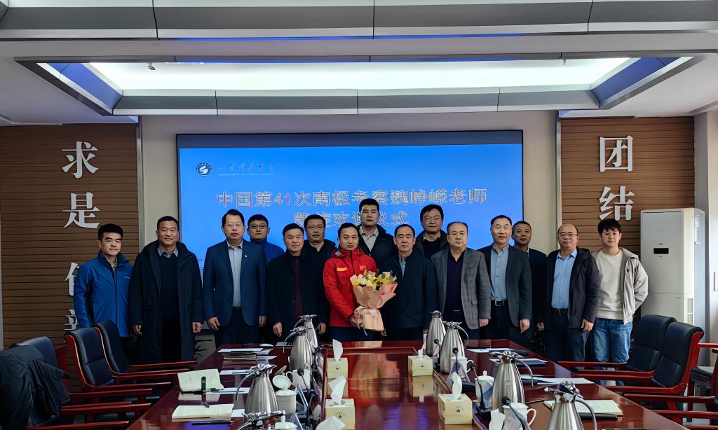 3月5日,学校举办仪式,欢迎我校海洋学院青年教师魏峥嵘圆满完成中国第41次南极考察任务凯旋。学校党委副书记、校长曾庆田代表学校对魏峥嵘表示慰问和祝贺。党委常委、宣传部部长李克周参加仪式。