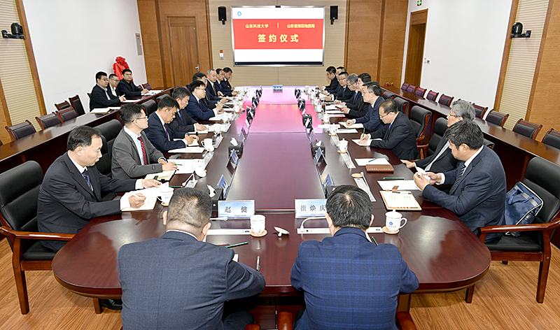 签约仪式前,范宇新一行参观了全国重点实验室、山东省沉积成矿作用与沉积矿产重点实验室,深入校史馆了解学校发展历程。签约仪式后,双方就具体合作项目实施路径、人才交流机制、科技成果转化等展开深入座谈。