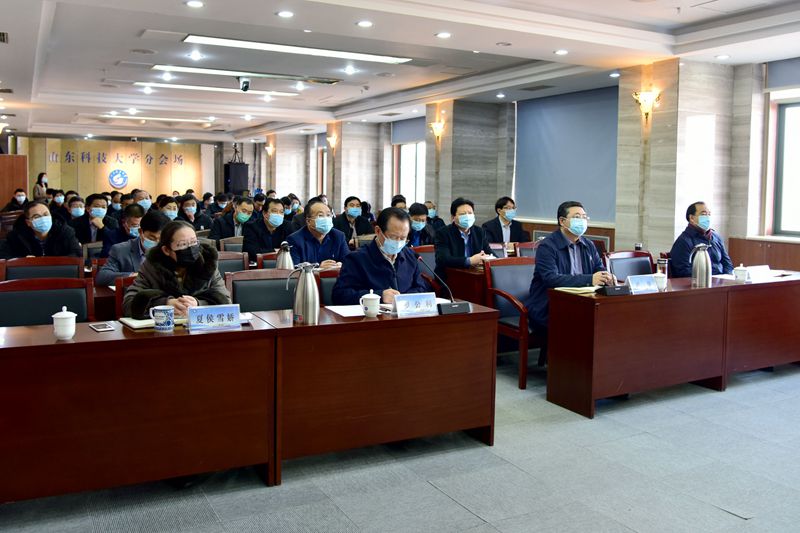 会议为三地视频会议,青岛校区设主会场,泰安校区、济南校区设视频分会场。校党委常委领导班子成员、党群部门主要负责人、中层党组织书记、党员干部群众代表等参加会议。(记者:范琪 责编:任波