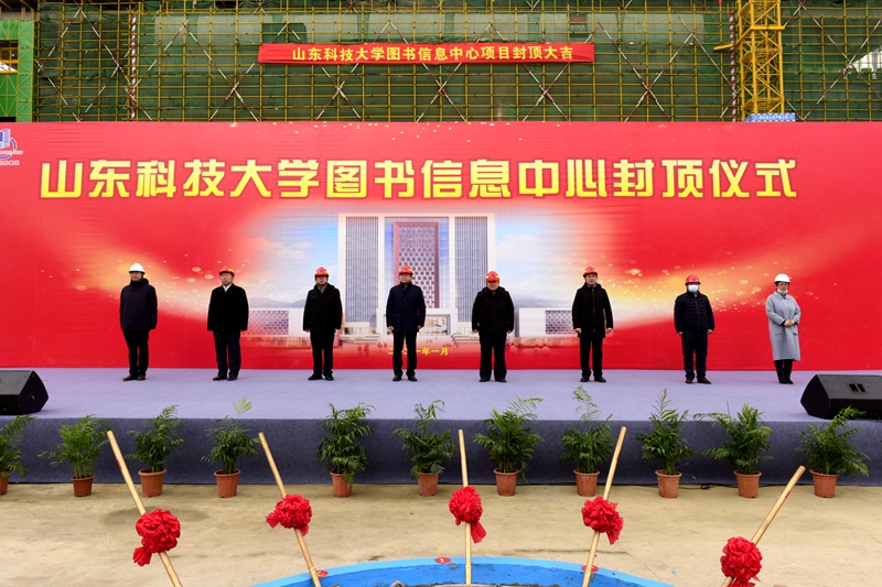 1月15日,备受师生关注的学校标志性建筑——图书信息中心项目主体顺利封顶。校党委书记罗公利,校长姚庆国,副校长周东华、孙鹤汀、张英杰和学校相关部门主要负责人及参建单位代表参加了封顶仪式。张英杰和施工单位、监理单位负责人分别致辞。