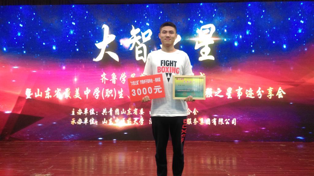 在共青团山东省委、山东省学生联合会揭晓的“大智之星”齐鲁学子奖学金获奖名单上,我校机电学院机械电子工程专业2015级硕士研究生杨扬从全省1682名大中学生脱颖而出,获“齐鲁学子榜样奖学金”,被授予“山东省大学生自强之星标兵”荣誉称号,大学组仅评选10名“山东省大学生自强之星标兵”,颁发“大智之星”齐鲁学子榜样奖学金。