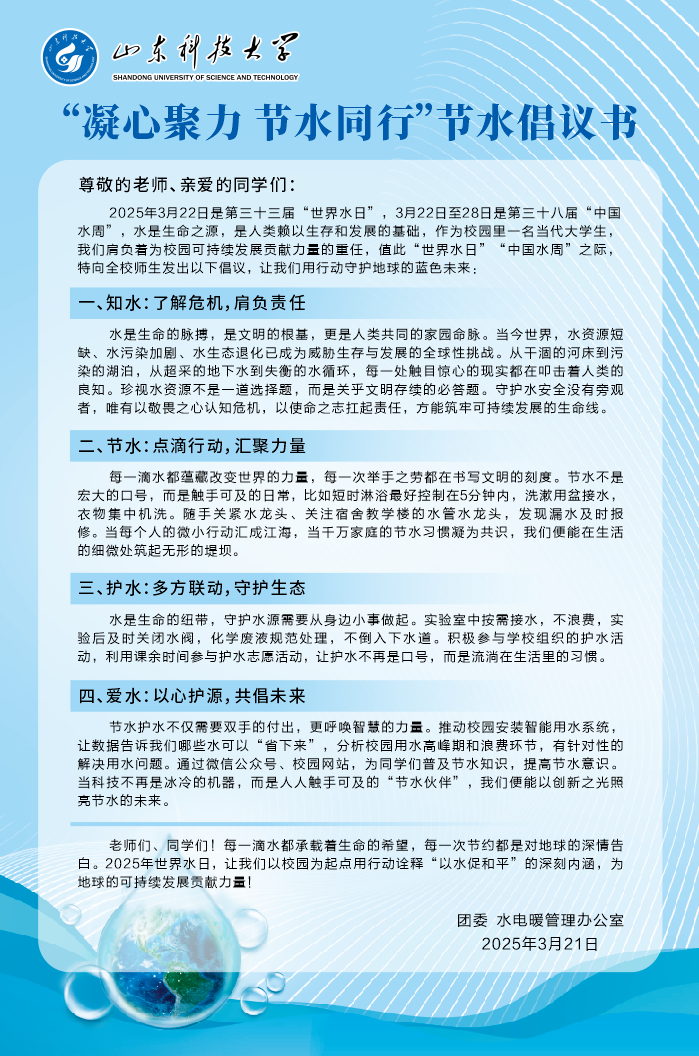 “凝心聚力 节水同行”节水倡议书